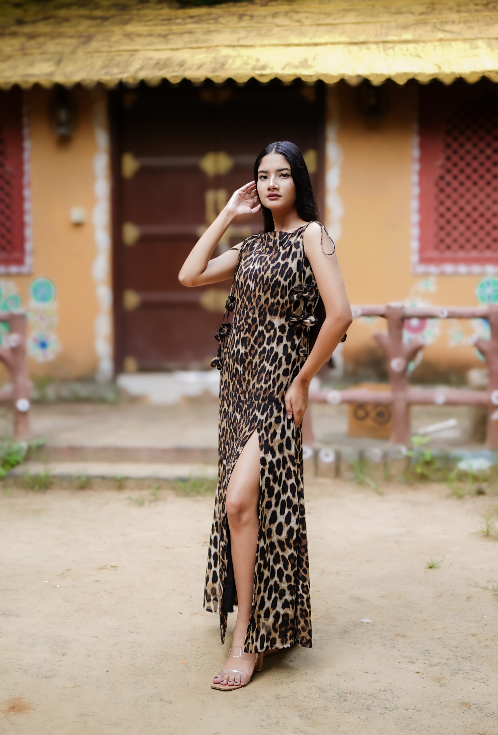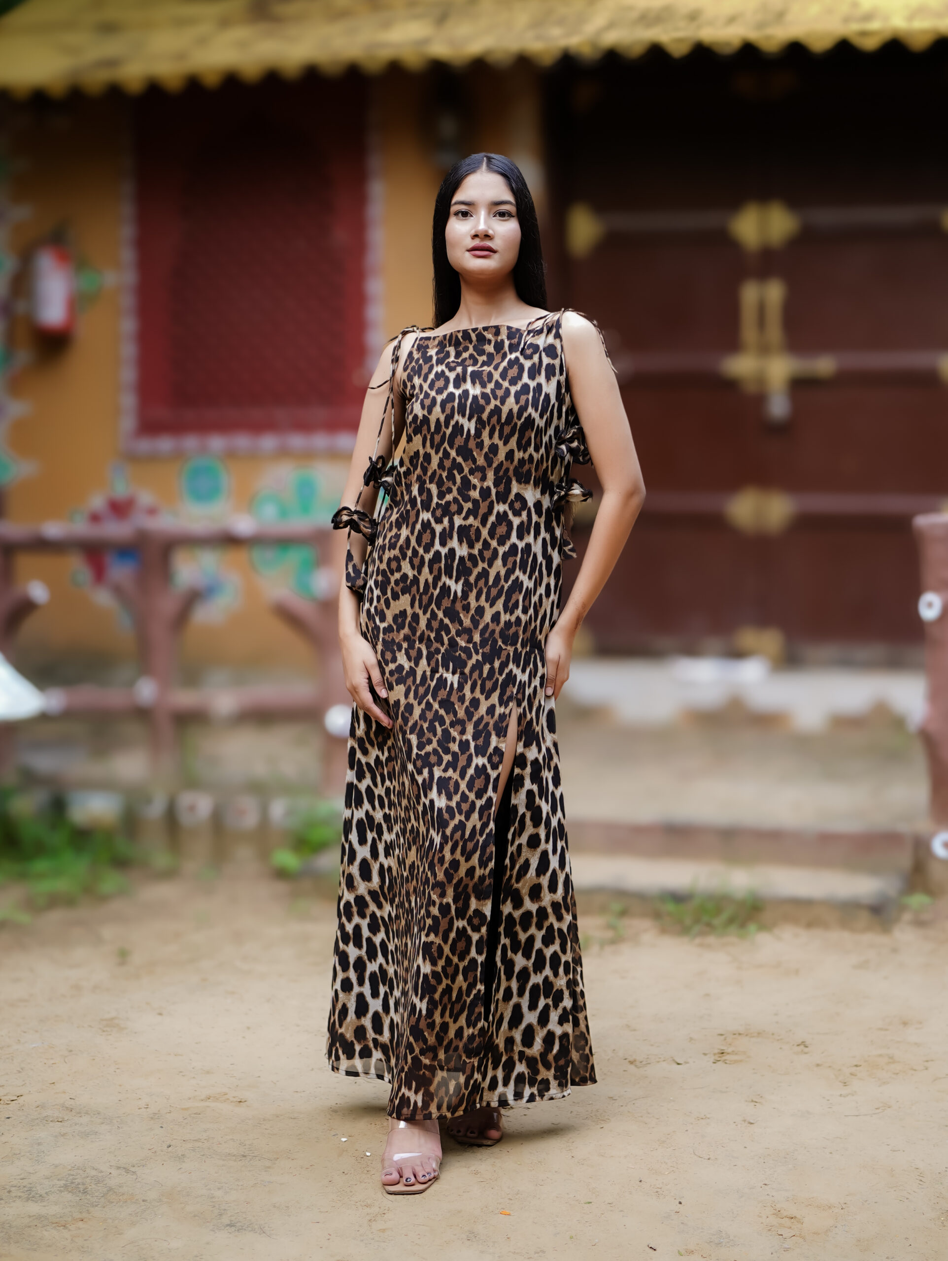 Be the first to review “Animal Print Slit Sheath Midi Dress”